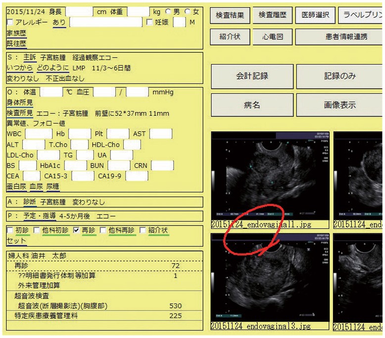 検査するとすぐにカルテに自動読込み/表示されカルテの一部として永久保存されます。