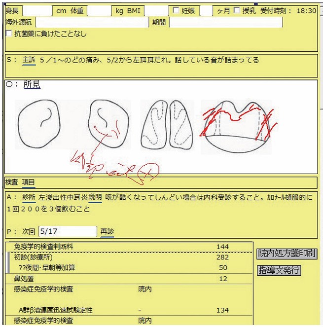 手書きもできるレセコン一体型電子カルテ