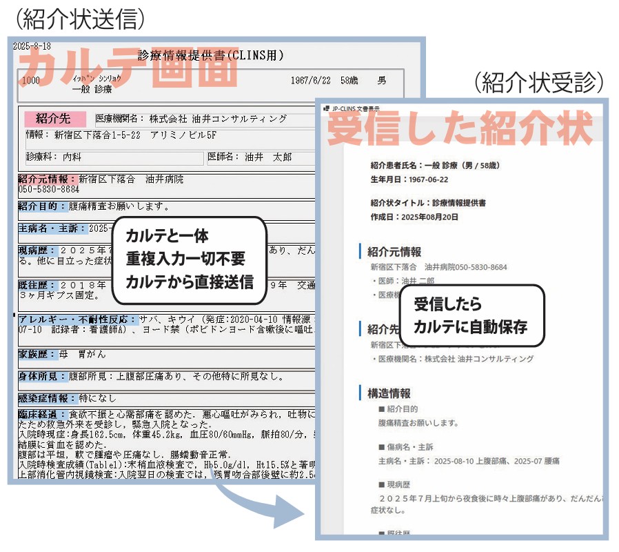 ドクターソフト(DRS)は電子形式の紹介状等をカルテ中で簡単に作成できます。カルテに記載されている情報を再入力する必要はありません。